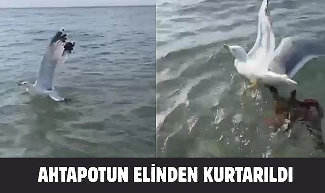 Ahtapotu eline alarak martıyı kurtaran vatandaş, bu ilginç anları cep telefonuyla kaydetti.