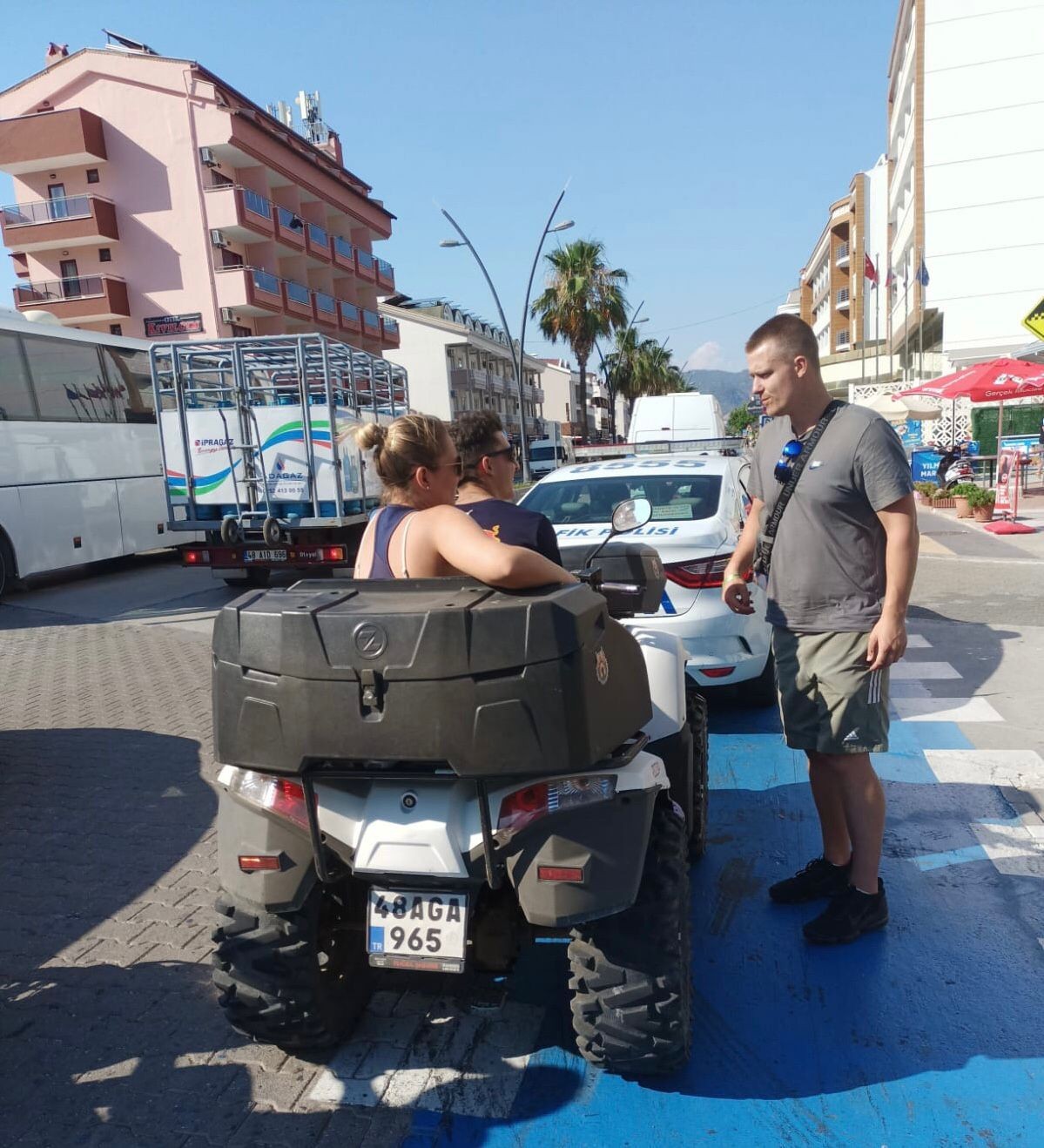 Marmaris'te ATV motosiklet ile şehir merkezinde drift atarak trafik güvenliğini tehlikeye düşüren İngiliz vatandaşı 3 kişiye trafik polislerinden ceza yağdı.