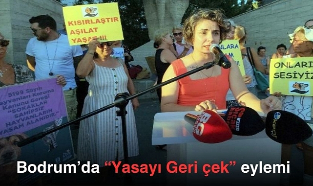 Muğla’nın Bodrum ilçesinde hayvanseverler AKP'nin sokak hayvanlarına "ötanazi" yapılmasını içeren kanun teklifine çok sert tepki gösterdi. Pazar günü akşam saatlerinde Bodrum Belediye Meydanı’nda düzenlenen “Yasayı Geri Çek” eylem ve basın açıklamasına Bodrum Hayvan Hakları Derneği üyeleri ile CHP İlçe Başkanı Tuna Işın, Türkiye İşçi Partisi İlçe Başkanı Pınar Göktürk, DEM Parti İlçe Başkanı Hülya Bayar ile İYİ Parti İlçe Başkanı Ogün Yıldız konuşma yaparak karşı oldukları yasanın geri çekilmesini istediler.