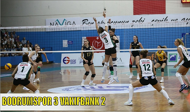 Türkiye Voleybol Federasyonu KFC Kadınlar 1’inci Lig A Grubu 2’İnci hafta karşılaşmasında Bodrum Belediye Bodrumspor sahasında Vakıfbank’ı konuk etti. Binnaz Karakaya Spor Salonu’ndaki karşılaşmayı 2 bine yakın sporsever izledi. Karşılaşmayı aynı zamanda Bodrumspor Başkanı Rıza Karakaya ve beraberindeki yönetim kurulu üyeleri takip etti. Karşılaşmanın ilk anlarından itibaren Bodrum taraftarı takımına destek verdi. Bodrum’un İncileri sahadan 25-23, 23-25, 33-31, 17-25, 15-11 olmak üzere 3-2 galip ayrıldı. Bu skorla birlikte Bodrumlu voleybolcular puanını 3’e yükseltti.
