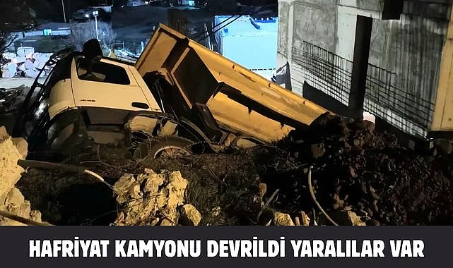 Şantiyede çalışma yapan kamyon devrilerek kaza yaptı.