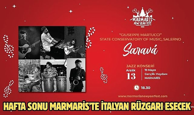Bu hafta sonu ise Yeni Yıl Sahnesi, yabancı müzik gruplarını Marmarisliler ve festivale gelen misafirlerle buluşturacak. Yeni yıl coşkusu kapsamında 13 Aralık’ta Sarava İtalyan Caz Orkestrası, 14 Aralık’ta ise The Sound of The City İtalyan Pop Orkestrası 19 Mayıs Gençlik Meydanı’nda sahne alacak.