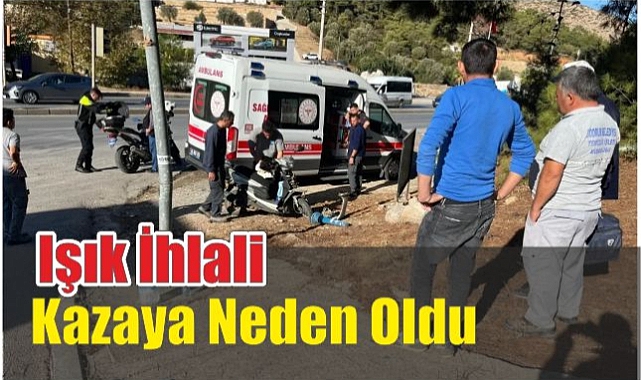Kaza, Emin Anter Bulvarı'nda meydana geldi. Milas istikametine doğru giden kapalı kasa kamyonet, Kızılağaç Kavşağı'nda, iddiaya göre ışık ihlali yaparak Kızılağaç istikametinden kavşağa giren Mehmet A. idaresindeki motosiklete çarptı. Kazada motosiklet sürücüsü hafif şekilde yaralandı. Hastaneye kaldırılan Mehmet A.'nın ehliyetinin de olmadığı öğrenildi. Kazayla ilgili soruşturma başlatıldı. Kent Tv