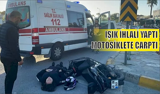 Kaza, sabah saatlerinde Gümbet Kavşağı'nda yaşandı. Turgutreis istikametine doğru seyreden kamyonet, Gümbet Kavşağı'na iddiaya göre ışık ihlali yaparak girdi. Kamyonet, o sırada kavşakta dönüş yapan motosiklete çarptı. Kazada yaralanan motosikletin sürücüsü Özlem Y.A. yaralandı. Yaralı, 112 Acil Sağlık ekiplerince hastaneye kaldırıldı. Yaralının hayati tehlikesi bulunmuyor. Haber Merkezi