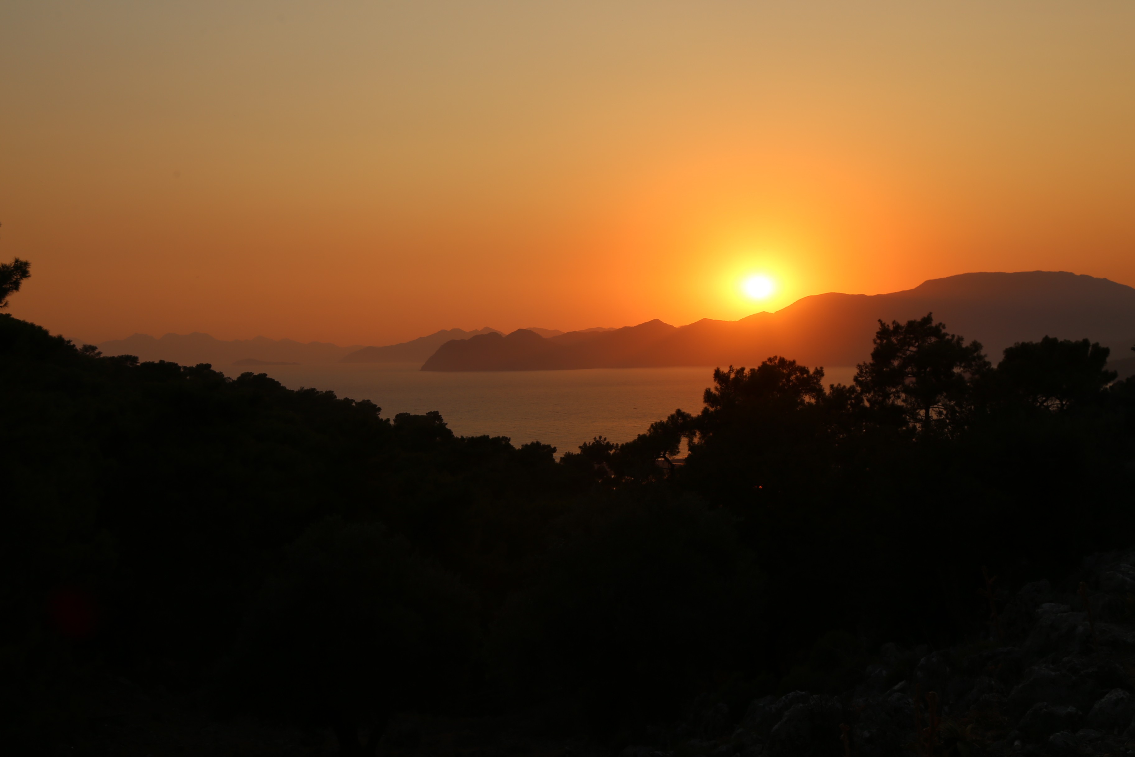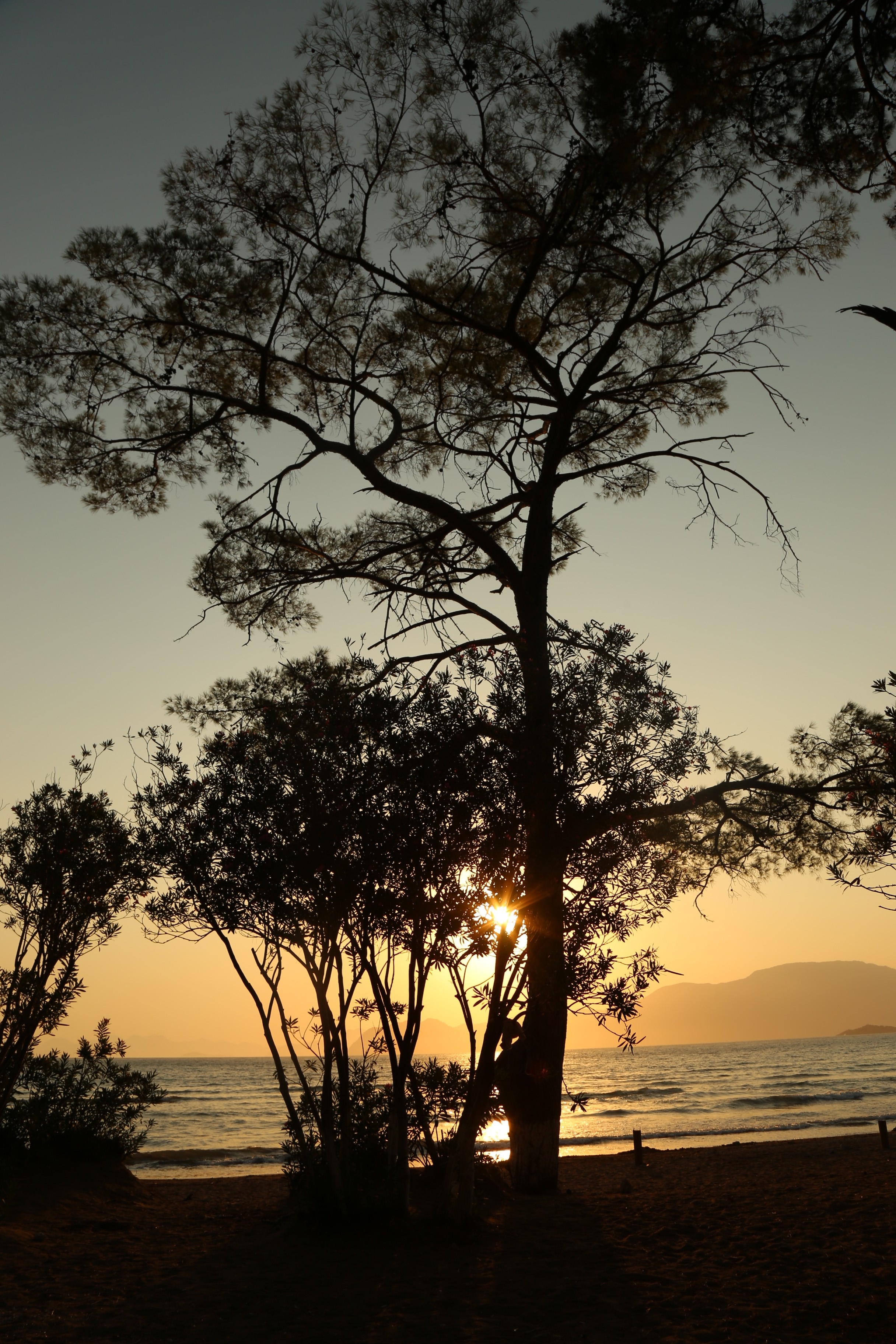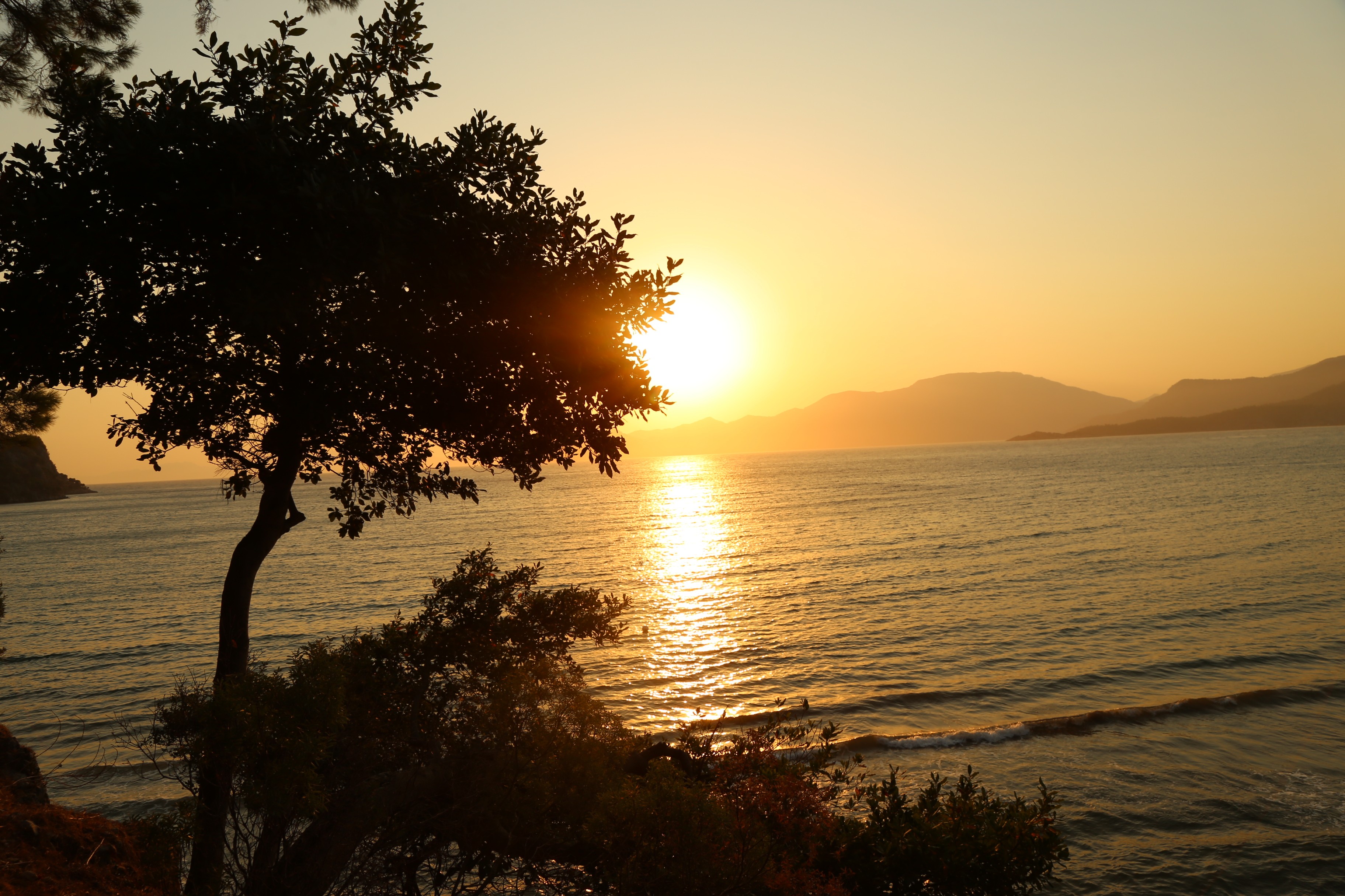 Gün batımı sırasında güneşin renk cümbüşü oluşturması ve barış ve sağlığın sembolü olan sahildeki zeytin ağacı ile birleşmesi görenleri adeta büyüledi.