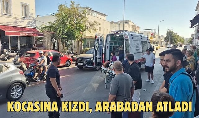 Olay, saat 16.45'te Gümbet Mahallesi İsmet İnönü Caddesi'nde yaşandı. Caddede kocasının kullandığı hafif ticari araçta yolcu olarak bulunan kadın, kendisini arka kapıdan aşağı attı. Yola savrulan kadın yaralandı. Yaralının yardımına çevredeki vatandaşlar koştu. Yaralı kadın, Acıbadem Tıp Merkezi ambulansı ile hastaneye kaldırıldı. Yaşananlarla ilgili konuşan kocası ise "Ben telefonda eşimin ailesiyle tartışıyordum. O da sinirlenip kendisini araçtan aşağı attı." Olayla ilgili soruşturma devam ediyor.