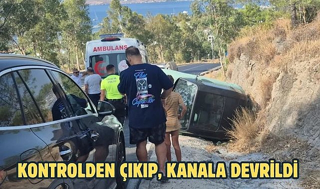 Sabah saatlerinde Ortakent Dilek Tepesi mevkisinde seyreden elektrikli otomobil, virajda sürücüsünün kontrolünden çıktı. Su kanalına devrilen otomobilin sürücüsü S.K.G. yaralandı. Kaza sonrası yaralı kadının eşi ve çocuğu panikle olay yerine geldi.