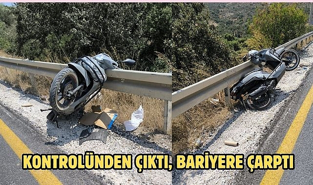 Dereköy – Peksimet yolunda seyreden motosiklet, virajda sürücüsünün kontrolünden çıktı. Devrilerek sürüklenen motosiklet, bariyerlere çarparak durabildi.