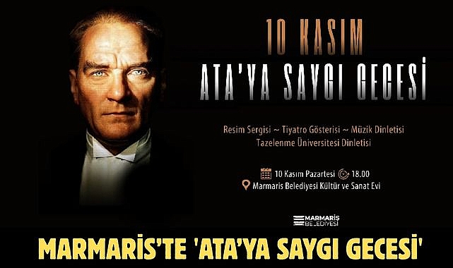 Marmaris Belediyesi, Ulu Önder Gazi Mustafa Kemal Atatürk’ü aramızdan ayrılışının 87. yılında sevgi, saygı ve özlemle anmak için özel bir program düzenliyor. “Ata’ya Saygı Gecesi” adıyla gerçekleştirilecek etkinlikte resim sergisi, tiyatro gösterisi ve müzik dinletisi yer alacak.