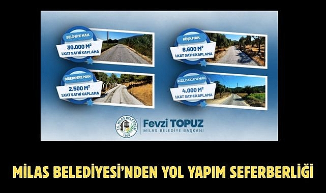 Çalışmalar hakkında konuşan Milas Belediye Başkanı Fevzi Topuz, “Milas’ın farklı mahallelerinde yol yapım çalışmalarını tamamlayıp vatandaşlarımız için konforlu ve güvenli yollar oluşturduk. Vatandaşlarımızın yaşam kalitesini artırmak için yaptığımız yatırımlarla beraber tamamlanan ve yapımına başlanacak olan çalışmalarla güvenli ve konforlu yolları mahallelerimize kazandırmaya devam edeceğiz. Ekiplerimiz Selimiye, Dibekdere, Köşk ve Kızılcakuyu Mahallelerinde yoğun çalışmalar gerçekleştirerek 1. Kat sathi kaplama faaliyetlerini tamamladı. Göldere ve Konak Mahallerimizde ise ihtiyaç duyulan noktalara beton döküm çalışması yaptık. Hizmetlerimiz tüm mahalle sakinlerimize hayırlı olsun. Milas’ımız için gece gündüz demeden var gücümüzle çalışmaya devam edeceğiz” dedi. HABER MERKEZİ