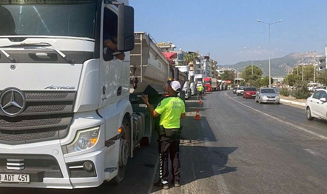 Muğla’nın Milas ilçesinde İlçe Emniyet Müdürlüğü Trafik Denetleme Büro Amirliği ekiplerince yük taşıyan araçlara yönelik denetimler devam ediyor.