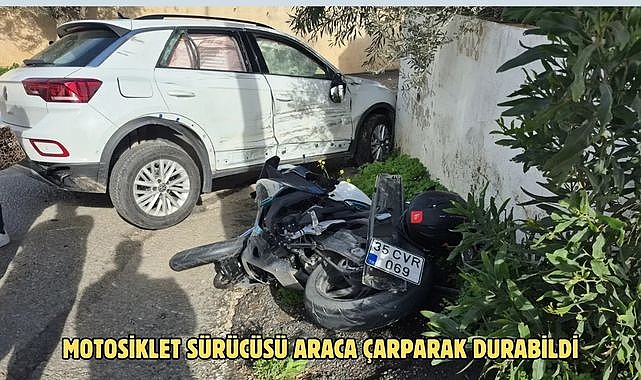 MOTOSİKLET SÜRÜCÜSÜ ARACA ÇARPARAK DURABİLDİ