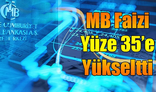 Türkiye Cumhuriyet Merkez Bankası Para Politikası Kurulu, politika faizi olan bir hafta vadeli repo ihale faiz oranını 500 baz puan artırarak yüzde 35'e çıkardı.