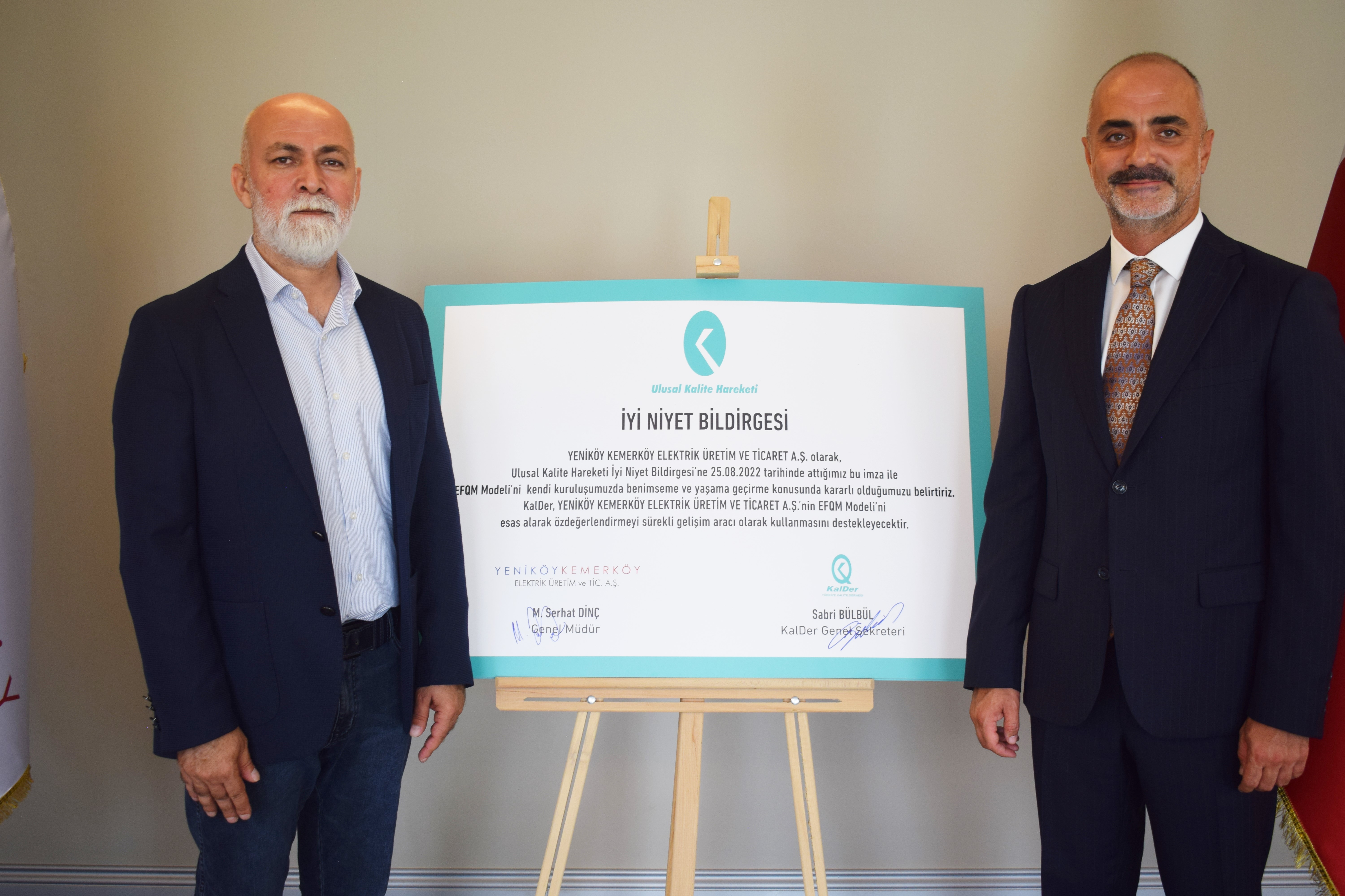 Ulusal kalite bilincinin yaratılması, geliştirilmesi ve kalite yönetimi ile mükemmellik modeli uygulamalarının yaygınlaştırılmasının ilk adımı olarak görülen “Ulusal Kalite Hareketi İyi Niyet Bildirgesi”, YK Enerji Genel Müdürü M. Serhat Dinç ile Türkiye Kalite Derneği (KalDer) Genel Sekreteri Sabri Bülbül tarafından imzalandı. Atılan imzalarla YK Enerji, Avrupa Kalite Yönetim Vakfı (EFQM) modelini tüm iş süreçlerine uygulayacak. YK Enerji Genel Müdürü M. Serhat Dinç imza töreninde yaptığı konuşmada, “2018 yılından beri KalDer üyesi bir şirket olarak, ‘sürdürülebilir iş mükemmelliği’ hedefine ulaşmak için EFQM modelini benimsedik. Bugün attığımız imzalarla da EFQM modelini hayata geçirme ve sürdürme konusunda kararlı olduğumuzu bir kez daha göstermiş olduk” dedi. Avrupa Kalite Yönetim Vakfı (EFQM), 1988 yılında Avrupa’nın önde gelen 14 şirketi tarafından “Avrupa’da sürdürülebilir mükemmelliğin itici gücü olma” misyonu ve “Avrupalı kuruluşların mükemmelliğe eriştikleri bir dünya” vizyonu ile kuruldu. Vakıf, üyelik sistemiyle çalışıyor ve kar amacı taşımıyor.
